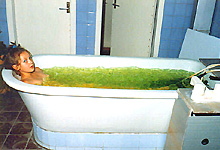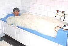 Водолечебная процедура, сочетающая действие на организм общей ванны и струи воды, направляемой под водой на массируемый участок. При проведении процедуры в минеральной воде лечебное действие дополняется химическим фактором. В основе механизма действия подводного душа - массажа лежит температурное и механическое раздражение. При одновременном воздействии теплой ванны и массажной струи у пациента наступает выраженное покраснение кожи, связанное со значительным перераспределением крови, улучшением крово- и лимфообращения, питания тканей, усиливается обмен веществ, быстрее рассасываются воспалительные очаги.