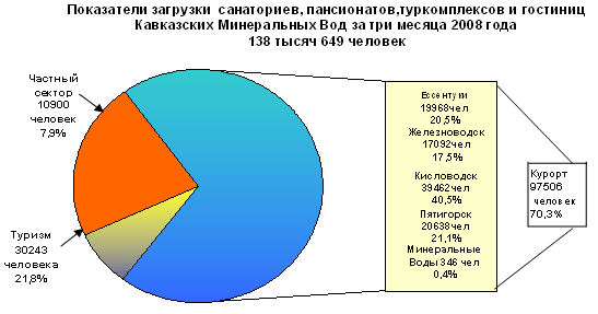 Курорты федерального значения Кавказские Минеральные Воды за три месяца 2008 года приняли на отдых и лечение 138649 человек, в том числе: